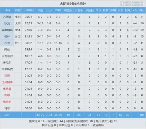 隨著太陽輸球,西部第六的森林狼正式鎖定季后賽。太陽43勝36負暫列西部第7,僅領先快船2個勝場,依然有可能掉到第8。兩個火箭舊將發(fā)揮糟糕,狄龍-布魯克斯投籃12中3,三分7中1,罰球4中3,僅得10分3籃板1助攻1搶斷。