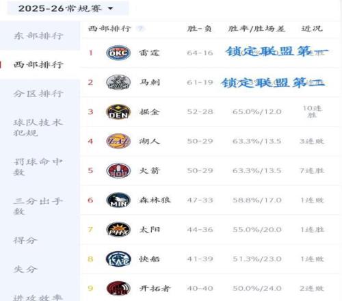 賽前數(shù)據(jù)顯示,雷霆以64勝16負傲視全聯(lián)盟,而馬刺以60勝19負緊咬其后,僅落后2個勝場。只要雷霆此役失利,馬刺便能憑借剩余賽程優(yōu)勢實現(xiàn)反超,問鼎榜首。