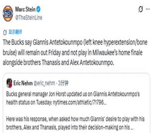 “這是個好問題,” 總經理霍斯特此前回應道,“我在意這件事,是因為我們之間的合作、一起完成的所有事,以及我希望未來能繼續共事的愿景,還有他為我個人所做的一切。從球隊層面來說,我們當然重視字母哥的想法,也希望他能重視我們的想法和感受。但在艱難的處境下,必須做出艱難的決定,我們的核心原則永遠是:從專業角度出發,做出對他的健康、對球隊最有利的判斷。”