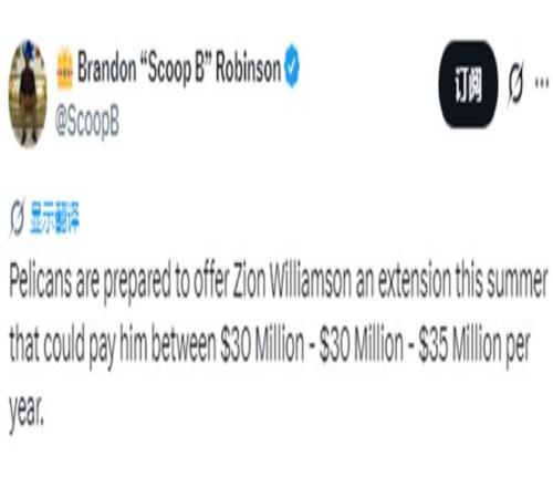 曝鵜鶘計(jì)劃今夏續(xù)約錫安!再簽23年合同年薪3000萬3500萬美元