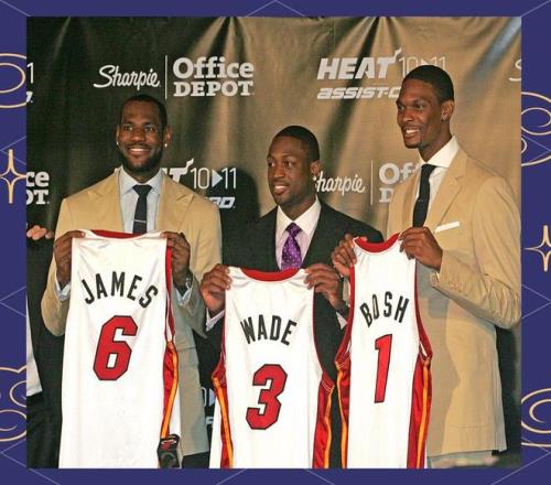 2010年詹姆斯在波什加盟熱火不久便高調(diào)宣布加盟邁阿密熱火,開(kāi)啟抱團(tuán)奪冠的先河。詹姆斯再2003年到2010年之間效力克利夫蘭騎士,在這7個(gè)賽季,詹姆斯拿下2座MVP獎(jiǎng)杯,但球隊(duì)始終無(wú)法突破凱爾特人等強(qiáng)隊(duì)的封鎖,未能如愿收獲總冠軍獎(jiǎng)杯。