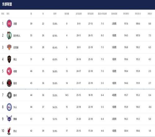 與此同時,黃蜂與熱火鎖定9、10名,具體誰能在附加賽拿到主場優勢,要看最后一場比賽的結果。