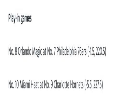 附加賽將于4月15日打響,首先進(jìn)行的是熱火VS黃蜂、開拓者VS太陽,隨后在4月16日進(jìn)行魔術(shù)VS費(fèi)城、勇士VS快船。