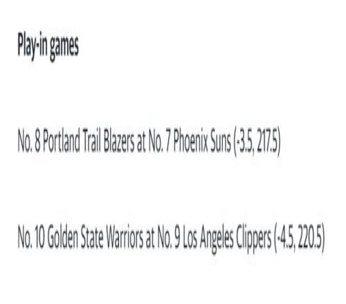 西部第七太陽VS西部第八開拓者、西部第九快船VS西部第十勇士。