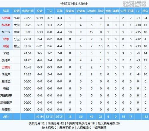 倫納德24分5板4助、祖巴茨18分19板、哈登18分7板10助2斷、米勒14分3板1助、科林斯13分5板1助、桑德斯11分4...