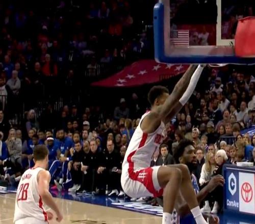 次節(jié)回來,恩比德主動(dòng)造接觸再次走上罰球線,申京抱怨:啥都是犯規(guī),你就不能碰他!沃特福德送助攻,格萊姆斯雙手砸扣打成2+1,申京先是快下上籃強(qiáng)打2+1,接著再補(bǔ)防大帽直接沒收球權(quán),予以回應(yīng)。阿門假傳真突,一步過掉防守起飛滑翔折疊暴扣,鎖定今日十佳球。