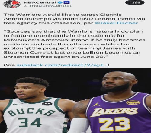 當然,如果勇士可以同時弄來字母哥+詹姆斯的話,那不僅是情懷拉滿,的確還很有機會沖擊總冠軍。