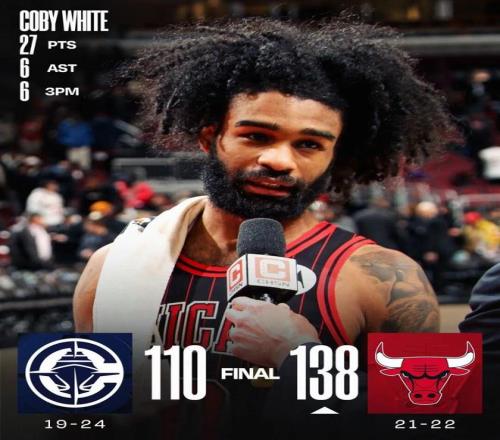 值得一提的是,就在上一場比賽,公牛還坐鎮主場138-110終結了快船的六連勝,那場比賽懷特的表現也是非常出色:全場出戰30分鐘,投籃16中9,三分10中6,罰球3中3,拿下27分2籃板6助攻,正負值+15。