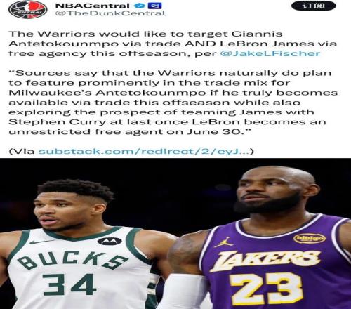 名記Fischer:勇士計(jì)劃今年夏天交易來字母哥,并在自由市場(chǎng)簽下詹姆斯......