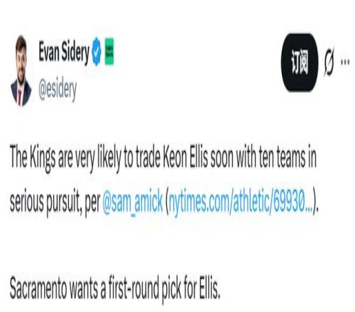 盡管埃利斯擁有備受青睞的“3D”屬性,國王隊主帥克里斯蒂卻在過去兩場比賽中棄用了他。消息人士稱,國王隊希望通過這筆交易得到一個首輪末段的選秀簽