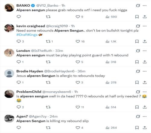 質(zhì)疑NBA的球迷也有:1.NBA這是被操縱了嗎?一個(gè)中鋒打了半場(chǎng)沒有籃板球?