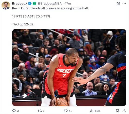 末節你就看到火箭各種的整活兒,泰特尺一級惡意犯規,小賈吃T,活塞打出11-1的攻防浪潮,杜蘭特連球都沒摸到就崩盤了,烏度卡叫了兩個暫停杜蘭特終于獲得出手機會連續3投命中一個幫助火箭穩定局勢。小賈1帽1斷1板1傳助力杜皇,KD持球干拔再中,火箭拉開到10分鎖定勝局,活塞不放棄KD被吹兩個三分犯規很無奈。