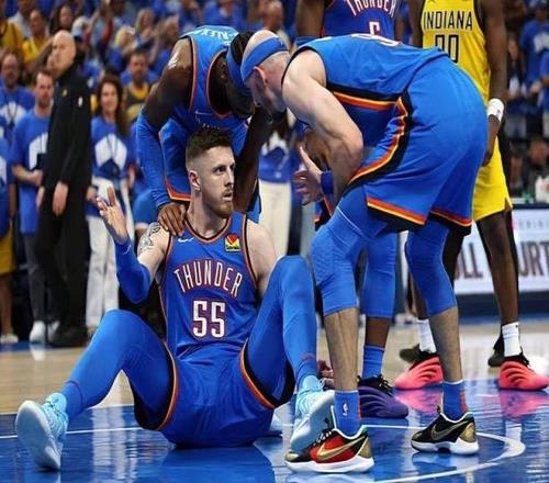 這正是雷霆隊最想念哈爾滕斯坦的地方,在沒有他的情況下,雷霆隊在前場的選擇有限。盡管霍姆格倫拼盡全力,但雷霆隊在籃板球上還是處于劣勢,并在低位進攻方面也乏善可陳。步行者隊全場搶下了51個籃板,而雷霆隊只有41個,尤其是步行者隊搶下的14個進攻籃板才是真正殺死比賽的關鍵。