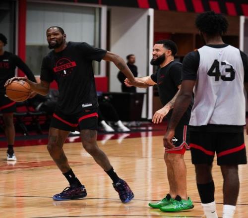 本場比賽火箭隊的第二功臣是杜蘭特,雖然這位老將24投11中,命中率一般,但他三分球9中4,罰球9中7,全場也轟下了33分,并且摘下了8個籃板,送出2次搶斷。