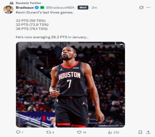 北京時間1月27日,火箭以108-99逆轉灰熊。這場比賽烏度卡險些就要背鍋了,好在杜蘭特、申京兩個核心在下半場接連的爆發,杜蘭特第三節單節12分為球隊縮小分差,末節開場是申京發力反超,杜蘭特連續兩個三分球直接鎖定勝局。