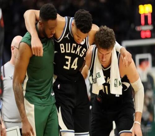 而更加雪上加霜的是,在對(duì)陣殘陣掘金一役中,約基奇、穆雷等掘金主力缺陣,幾乎派上了純替補(bǔ)陣容,但雄鹿仍然輸?shù)袅吮荣悾?strong>堪稱本賽季最恥辱的一戰(zhàn)。最致命的是,在這場(chǎng)比賽中,第四節(jié)還剩30多秒時(shí),球隊(duì)當(dāng)家球星字母哥在毫無對(duì)抗的情況下突然痛苦倒地,手捂小腿無法站起,隨后只能被攙扶著一瘸一拐地走下場(chǎng)。