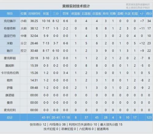 克尼佩爾前9次三分出手進(jìn)了8個(gè),讓人看到了巔峰克萊的影子。讓人意外的是,黃蜂賽后發(fā)布的獲勝海報(bào),居然只有三球一個(gè)人。此役三球17中8,得到22分3板9助3失誤。米勒13中7,砍下23分6板2助。最近7場(chǎng),黃蜂6勝1負(fù)。