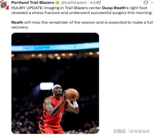 除了戈登,今天還有個比他還慘的“倒霉蛋”,開拓者隊的內線杜普 - 里斯,遭遇了應力性骨折,這傷,就跟“定時炸彈”似的。開拓者官方都發話了,里斯已經做完手術,可這賽季是徹底“涼涼”了。這賽季里斯打了32場,場均2.9分1.2板,這數據,就像小水花似的。開季初,他還跟楊瀚森在第三中鋒的位置上“爭得你死我活”,可隨著賽季推進,他慢慢就變成純外線炮臺了,這倆人的戰術位置,就跟兩條平行線,沒啥競爭關系。而且他倆上場時間都不多,在場下那叫一個親密,勾肩搭背地聊天,就跟多年未見的老友似的。