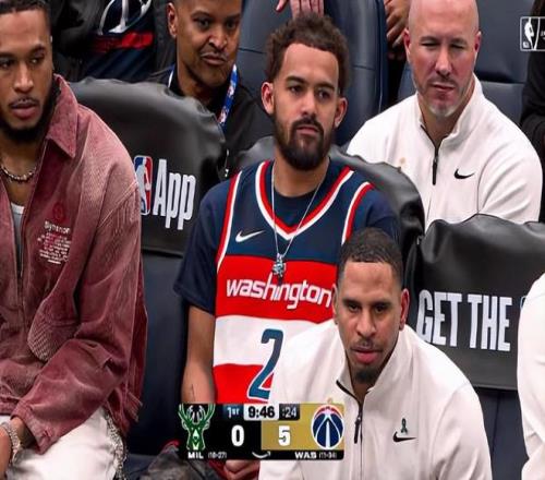 而在奇才替補席上,特雷?楊的身影格外醒目:他特意穿上了沃爾效力奇才時的 2 號球衣,用最質樸的方式向前輩致意。