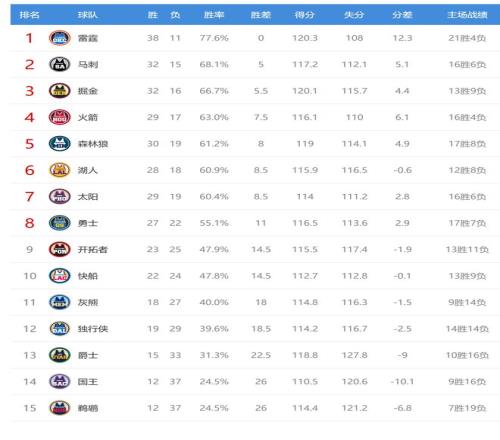 掘金贏球后32勝16負(fù),排名西部第三,落后第二的馬刺0.5個勝場。