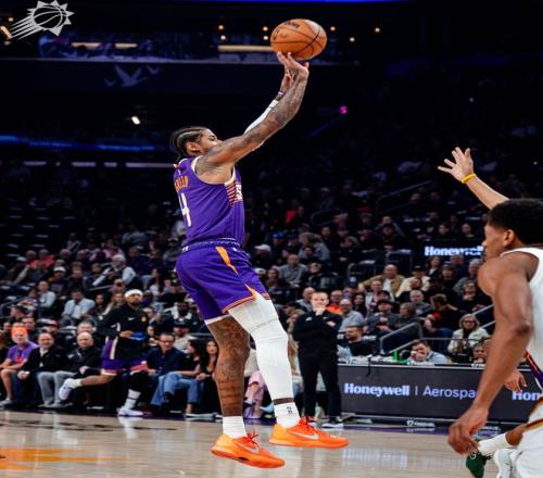 在狄龍牽制住騎士防守注意力的情況下,太陽(yáng)其他球員也獲得了更多空位出手的機(jī)會(huì),全場(chǎng)戰(zhàn)罷一共有7名球員得分上雙,其中杰倫格林漸入佳境,打出了11+4+1+1的個(gè)人表現(xiàn),為球隊(duì)捍衛(wèi)主場(chǎng)貢獻(xiàn)了自己的力量。