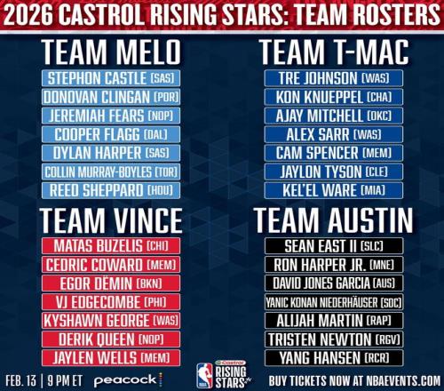 2026NBA全明星新秀賽對陣: