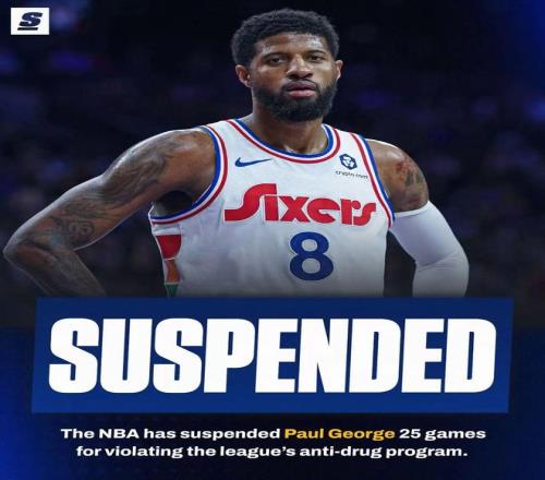 爆料王Shams:喬治因違反聯盟禁藥政策將被禁賽25場比賽......該消息已經得到NBA官方的確認。是的,就是費城的喬...