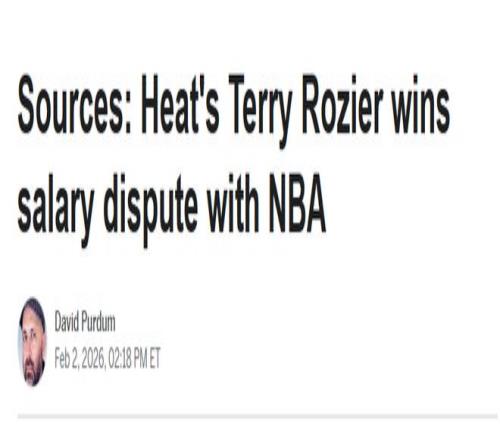 北京時間2月3日,據ESPN援引消息人士報道,在邁阿密熱火隊后衛特里-羅齊爾與NBA的薪資糾紛仲裁案中,仲裁員今日作...