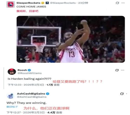 就在消息下面,有美國網友給出了一個非常犀利的表態:“哈登要再跑一次了嗎?”、“為什么會這樣?快船現在不是在贏球嗎?”、“哈登回家吧?!?/p>