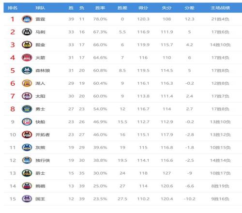 鵜鶘輸球后13勝39負,繼續排名西部第14。