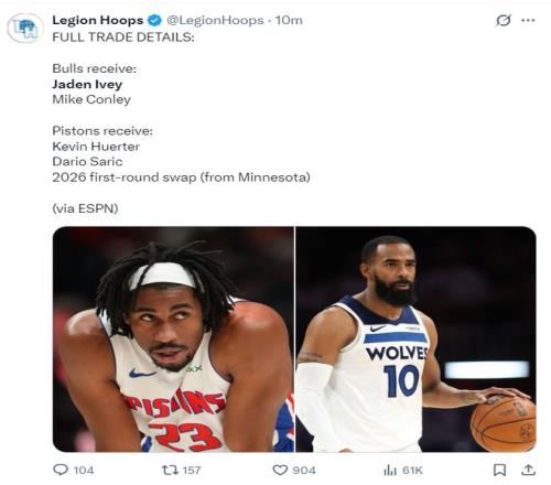 公牛得到:杰登-艾維、邁克-康利;