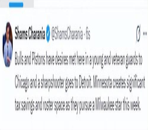 根據(jù)Shams的說(shuō)法,這筆三方交易,公牛與活塞得到了各自需要的人才,一位年輕球員與一位經(jīng)驗(yàn)豐富的后衛(wèi)加盟芝加哥,而一位投手則加入底特律,明尼蘇達(dá)在本周會(huì)繼續(xù)追逐揚(yáng)尼斯-阿德托昆博,他們成功節(jié)省了奢侈稅并騰出了大量的球員名額。