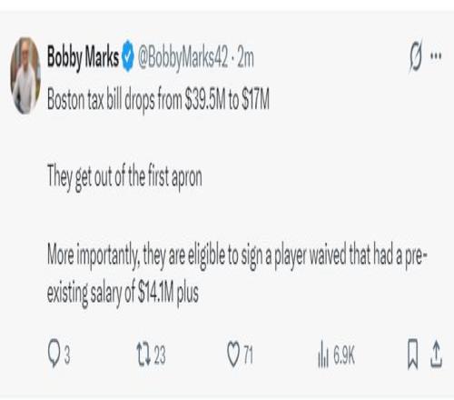 綠凱也成功從第一奢侈稅征點上下來了,更關鍵的是,他們有資格裁掉一位球員,該球員此前的薪水為1410萬美元。