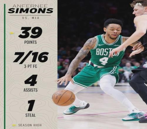 本賽季至今,西蒙斯出戰49場比賽全部替補,場均上陣24.5分鐘得到14.2分2.4板2.4助,場均以39.5%命中率扔進2.7記三分球,最佳第六人有力競爭者,可惜為合同年薪資2768萬美元,成了被凱爾特人放棄的原因之一。