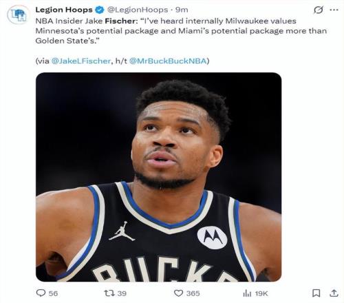 根據(jù)NBA記者杰克-費(fèi)舍爾的報(bào)道,密爾沃基雄鹿隊(duì)認(rèn)為熱火、森林狼的籌碼比金州勇士隊(duì)更好。