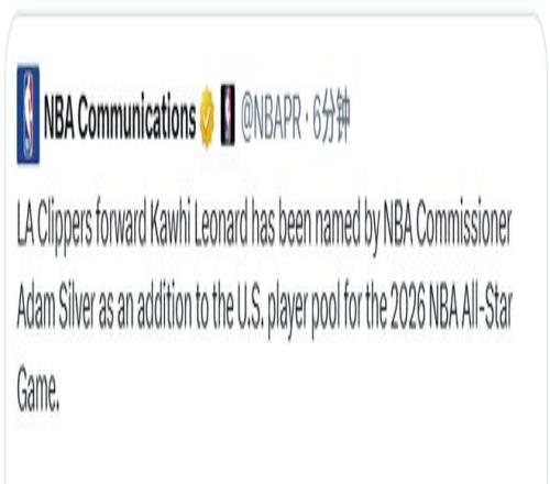 NBA官方:萊昂納德增補入選2026年全明星賽填補美國隊人數缺口