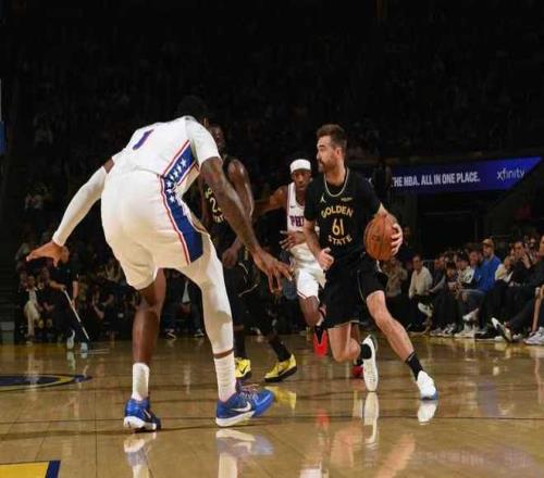 76人過去4場連贏雄鹿、國王、鵜鶘與快船收獲4連勝,勇士上一場主場124-131輸給活塞,本賽季首次交鋒勇士客場98-99惜敗76人。本場勇士缺少庫里兄弟、庫明加與巴特勒,76人缺少恩比德、喬治。首節開局76人7-3領先,勇士追到9-9,76人一波7-0攻勢取得領先。勇士回敬一波6-0攻勢追分,雙方之后持續交替領先纏斗,76人29-32被反超,沃特福德中投命中,首節結束76人31-32落后勇士。首節勇士20中12達到6成準星,其中三分15中8,波斯特3中3得到8+2+2與霍福德2中2得到6分;76人31中13,其中三分10中3,烏布雷8分與馬克西4中1得到2分。
