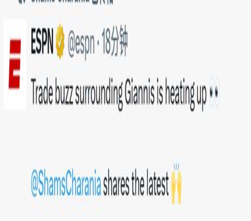 名記Shams在今天的節(jié)目上帶來了字母哥交易的最新動態(tài)——