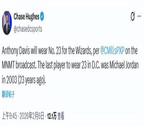 邁克爾-喬丹曾在奇才打過兩個賽季,共計142場比賽,場均21.2分5.9籃板4.4助攻1.5搶斷,當時他穿23號,喬丹退役后到濃眉加盟前,再沒有奇才球員穿23號。