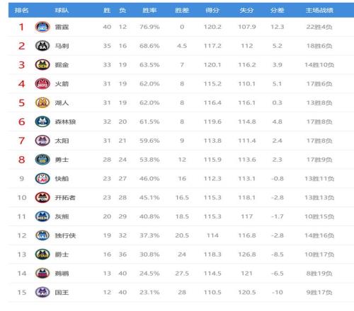 今日比賽后湖人、森林狼排名互換,其他西部球隊排名不變。