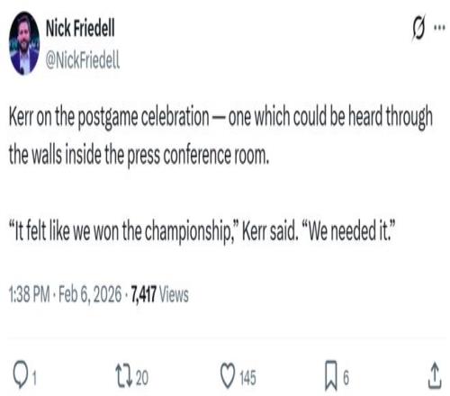雖然對球隊排名影響不大,但對于處于下行勢頭的勇士隊來說,這一場含金量十足的勝利無異于一劑強心針。
