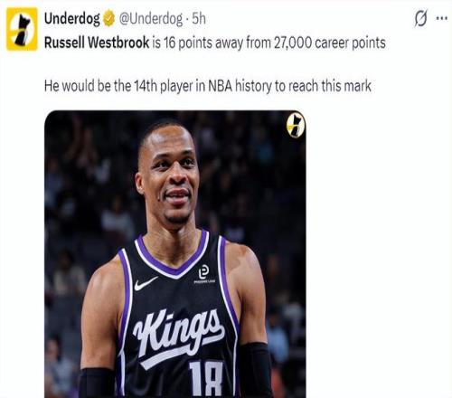 北京時(shí)間2月10日,國(guó)王后衛(wèi)拉塞爾-威斯布魯克達(dá)成了27000分里程碑,37歲的威少在歷史得分榜上排在第14位,他距離第13的埃爾文-海耶斯只差313分,國(guó)王這支擺爛的球隊(duì)剩下的唯一亮點(diǎn)就是威少,此役后國(guó)王已經(jīng)吞下13連敗。