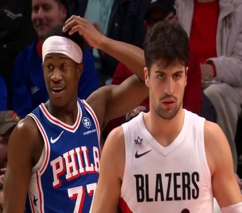 第三節開拓者隊打瘋了,命中率高得驚人,卡馬拉延續手感,羅威也連進三分,開拓者單節狂轟49分,以113-87遙遙領先進入第四節,快把比賽打花了。76人大比分落后,還沒有投降,兩隊依然在用主力來打。第四節阿夫迪亞在籃下補籃打進,博納對抗中撞倒克林根,打成了2+1,馬克西三分命中,開拓者124-105領先,克雷伊奇自投自搶補籃得手,韋斯利反擊中上籃放進。還有半節時間,開拓者領先26分,還不換小楊嗎?