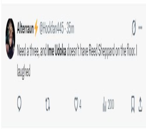火蜜:我們需要一個三分,而烏度卡卻不給謝潑德登場,太可笑了。