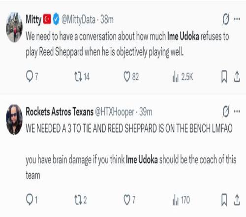 火箭記者:我們需要找烏度卡好好談談,為什么謝潑德如此出色關鍵時刻卻不讓他登場?