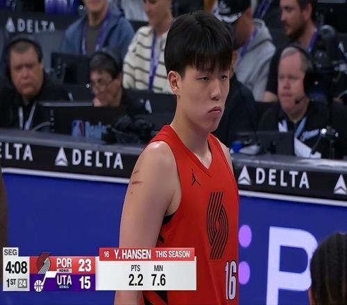 今天的比賽,楊瀚森總體發揮還可以,出場3分鐘,拿下了2分,其他數據都為0。首節上場之后,對手科利爾罰球,第二罰不進,楊瀚森卡住籃板球位置,隊友格蘭特順利撿漏拿下籃板。隨后的進攻回合,楊瀚森和后衛打擋拆,然后順下往里走,一個輕巧上籃,沒有進,但是裁判哨響吹了菲利波夫斯基打手犯規,楊瀚森獲得2次罰球的機會。但爵士隊主帥哈迪很不解風情,不知道是故意的還是為啥,對這個犯規進行了挑戰。