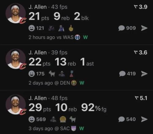跟哈登這樣的傳球大師合作,最開心的莫過于騎士內線球員,比如阿倫最近三場比賽在前者喂餅下,分別貢獻29分10板、22分13板和21分9板,直接打出全明星級別中鋒的數據,盡管人家早在21-22賽季就入選過全明星。