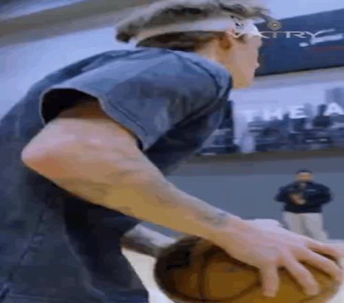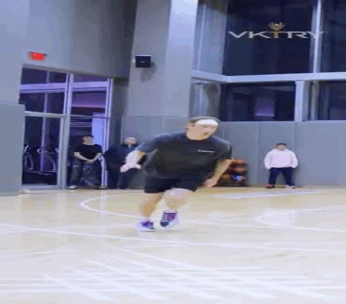 第一記扣籃就驚到了,與兩人配合,飛躍+正面反手背扣,這一球難度不用多說,不僅要有出色彈跳,也對柔韌性有一定要求,扣籃大賽史上從未出現過類似扣籃。