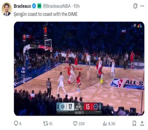 申京在這場比賽中登場9分鐘也再度創(chuàng)造了土耳其球員的歷史紀錄,他這兩年的登場時間合計達到32分鐘繼續(xù)刷新土耳其球員全明星登場時間新高。