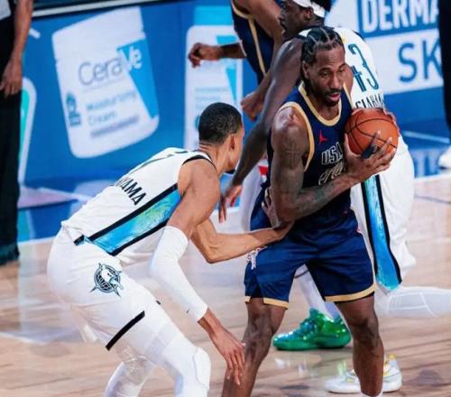 一共打了20分鐘,空砍33分,文班亞馬很不滿意,賽后說了兩點:我從一開始就努力防倫納德了,拼盡全力了;一直強調別讓對手投三分,但這結果就是讓人失望!和老炮隊一戰,文班亞馬單吃小卡,頂著詹姆斯造犯規,迎著杜蘭特干拔,包括背轉身大猩猩雙手拽扣,他真想贏!但顯然,文班亞馬的隊友可能真覺得無所謂,尤其是兩位MVP大熱門:約基奇和東契奇。用專欄記者霍爾姆斯話說,文班亞馬奠定了基調,他的表現讓小卡開啟進攻模式,讓愛德華茲覺得這場比賽必須有所展示,全明星需要這樣的球員。
